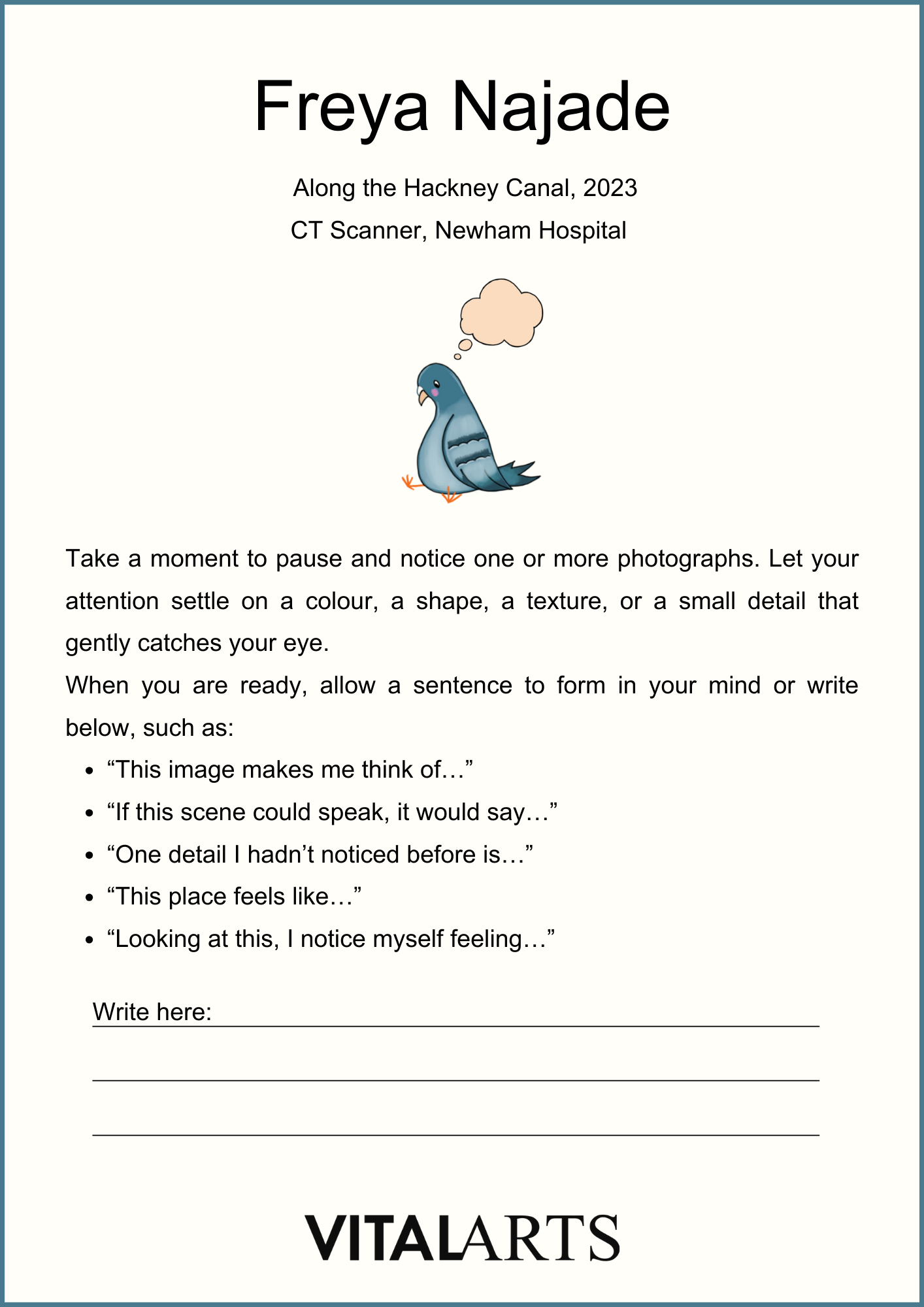 The activity includes three optional prompts which can be done individually, with colleagues, or quietly alone. You can use the map to find the artworks in hospital.