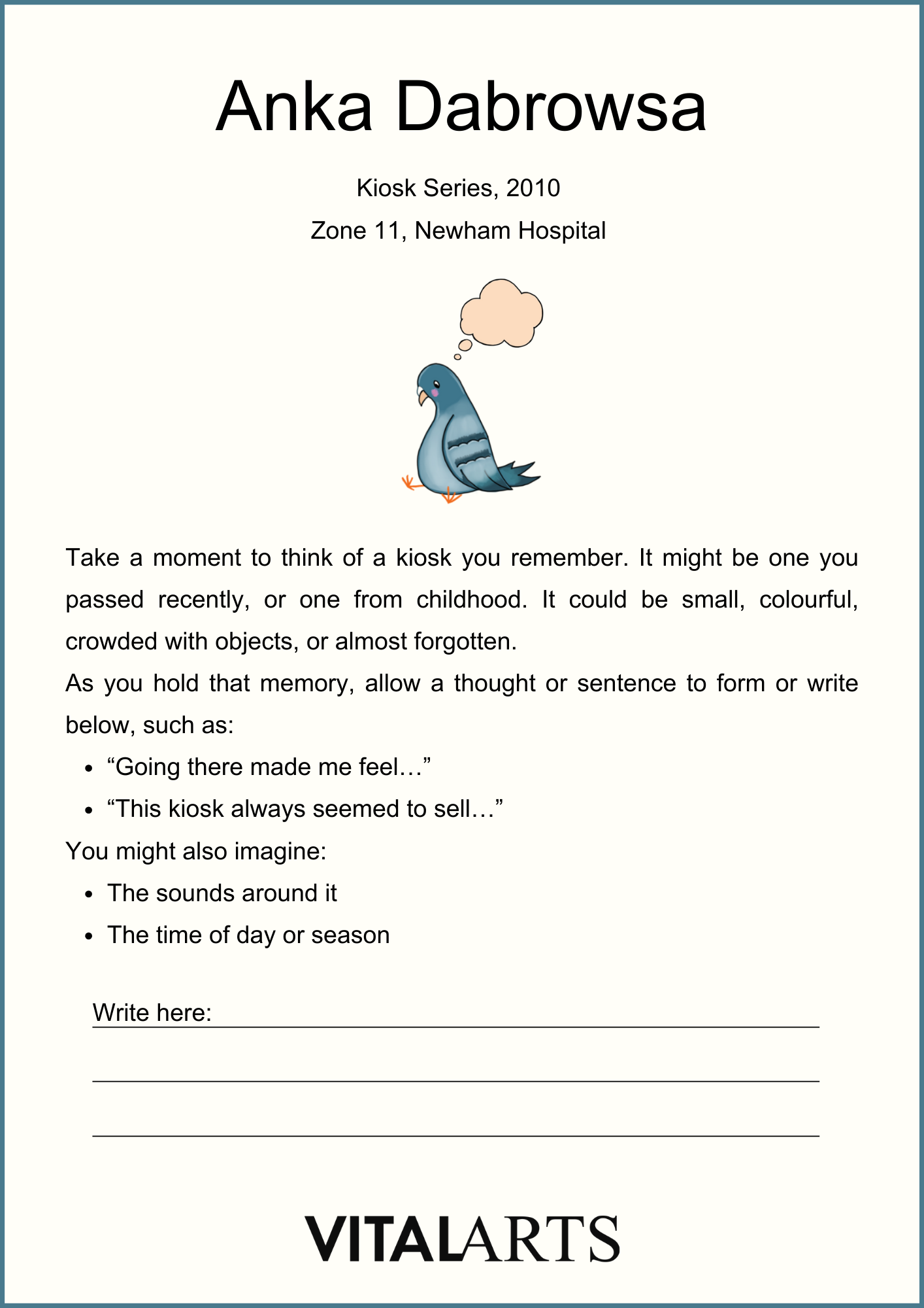 Find an artwork in or around Newham Hospital, wherever you are working. Take a moment to stop and look at it.