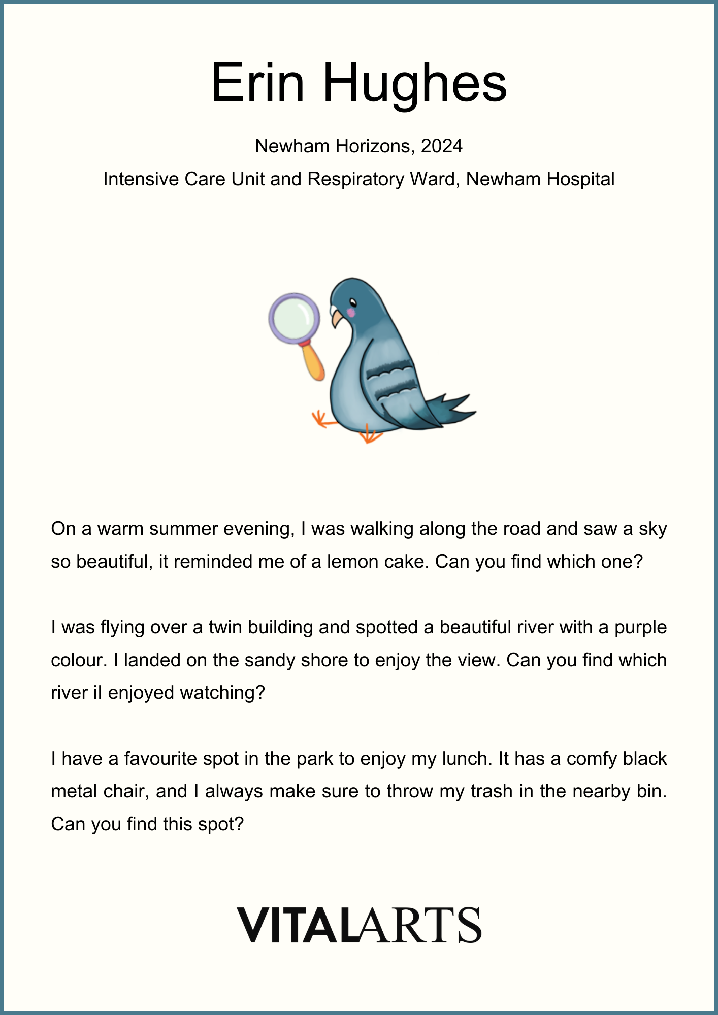 You are invited to take part in a fun riddle trail! Find a set of clue cards below that include the name of an artwork and a set of riddle-style questions which our friendly pigeon mascot will ask you along the way!
